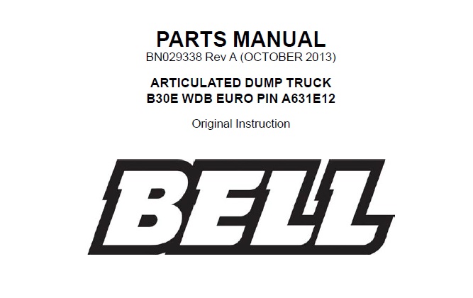 Download Parts Manual For Bell B30E WDB EURO PIN A631E12 ARTICULATED DUMP TRUCK.