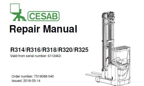 Download Service Repair Manual for Cesab R314, R316, R318, R320, R325 Forklift Truck. Order number: 7519088-040 Issued: 2018-05-14 This Factory Service Repair Manual offers all the service and repair information …