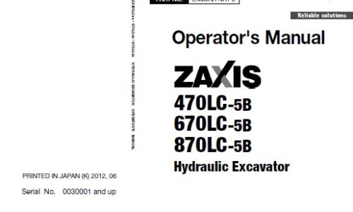 Download Operator’s Manual For Hitachi Zaxis 470LC-5B , 670LC-5B , 870LC-5B Hydraulic Excavator. Manual No. ENMJAA-NA1-2 PRINTED IN JAPAN (K) 2012, 06 This manual contains information concerning the adjustment and …