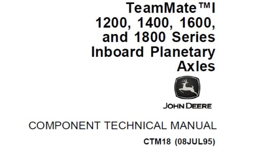 Download Component Technical Manual For John Deere TeamMate I 1200, 1400, 1600, and 1800 Series Inboard Planetary Axles. Publication No. CTM18 (08JUL95) This Technical Manual offers all the service and …
