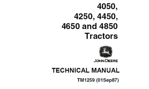 Download Operation and Tests Technical Manual For John Deere 4050, 4250, 4450, 4650, 4850 Tractors. Publication No. TM1259 (01SEP87) This Technical Manual offers all the service and repair information for …