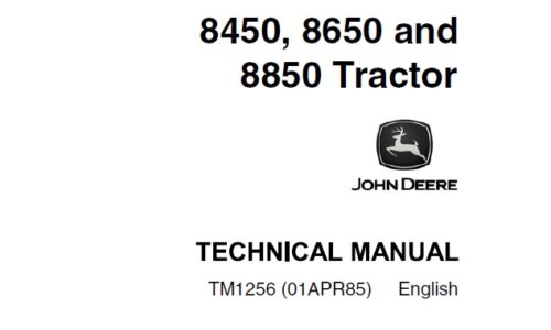 Download Operation and Tests Technical Manual For John Deere 8450, 8650, 8850 Tractors. Publication No. TM1256 (01APR85) This Technical Manual offers all the service and repair information for John Deere …