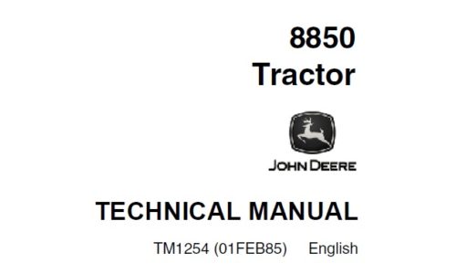 John Deere 8850 Tractor Repair Technical Manual (TM1254)