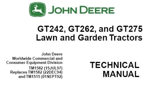 John Deere GT242 GT262 GT275 LAWN GARDEN TRACTOR Service Repair Manual (TM1582)