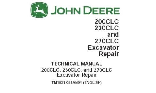 Download Complete Service Repair Technical Manual for John Deere 200CLC, 230CLC and 270CLC Excavator. This Factory Service Repair Manual offers all the service and repair information about John Deere 200CLC, …
