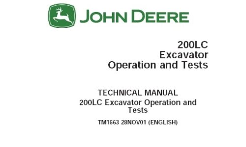 Download Complete Operation and Test Technical Manual for John Deere 200LC Excavator. Part No. TM1663 28NOV01 (ENGLISH) This Factory Operation and Test Service Manual offers all the service and repair …