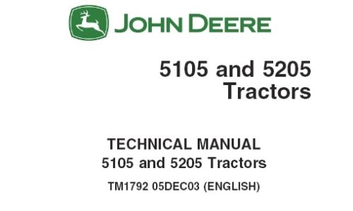Download Complete Technical Service Repair Manual for John Deere 5105 and 5205 Tractors. Part No. TM1792 05DEC03 (ENGLISH) This Factory Technical Service Repair Manual offers all the service and repair …