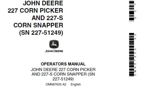 Download Operator’s Manual For John Deere 277 Corn Picker and 227-S Corn Snapper (Serial No. 277-51249). PART No. OMN97600 A2 This manual contains information concerning the adjustment and maintenance of …