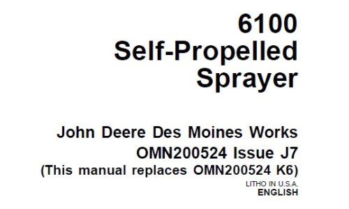 Download Operator’s Manual For John Deere 6100 Self-Propelled Sprayer. PART No. OMN200524 Issue J7 (This manual replaces OMN200524 K6) This manual contains information concerning the adjustment and maintenance of the …