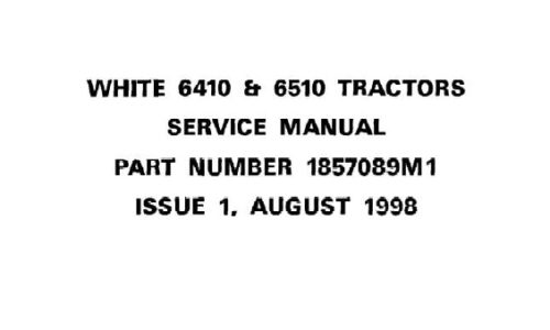Download Service Repair Manual For White 6410 , 6510 Tractors. Part No. 1857089M1 Issue 1. Auguest 1998 This Service Repair Manual offers all the service and repair information for White …