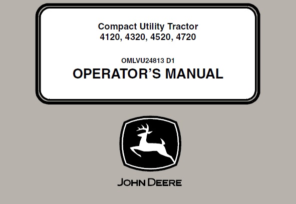 This manual contains information concerning the adjustment and maintenance of the John Deere 4120 , 4320 , 4520 , 4720 Compact Utility Tractors. Please have all operators read this manual carefully and keep it available for ready reference. With this in-depth & highly detailed manual you will be able to operate on your vehicle with the absolute best resources available, which will not only save you money in repair bills but will also help you to look after your business.
