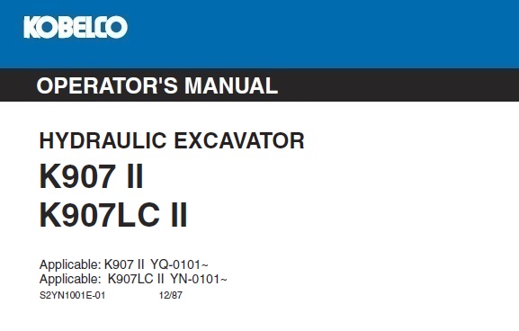 Download Operator’s Manual For Kobelco K907 II, K907LC II Hydraulic Excavator.