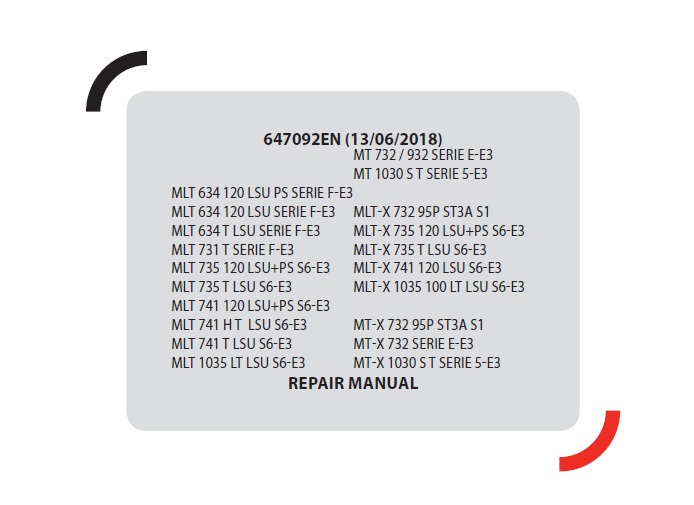 This Repair Manual includes ENGINE, AXLE, HYDRAULICS, ELECTRICITY, BOOM and other information for Manitou MLT 634, 731, 735, 741, 1035 Lift Truck. How to repair your machine more efficiently. Sometimes your work falls short, but you have to redo it. A correct manual can regulate your repair work, so its value goes far beyond the amount of money you pay. The information on this manual covered service and repair information you need to know when you want to repair the Manitou MLT 634, 731, 735, 741, 1035 Lift Truck.