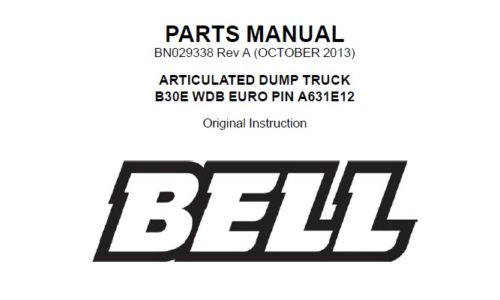 Download Parts Manual For Bell B30E WDB EURO PIN A631E12 ARTICULATED DUMP TRUCK. Part No. BN029338 Rev A (OCTOBER 2013) This Factory Parts Manual offers all the parts information for …