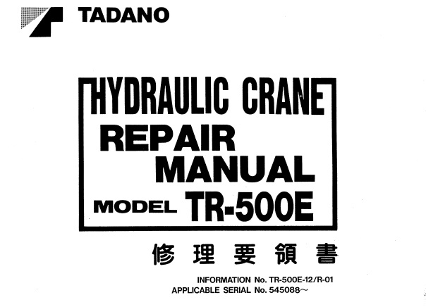 Download Service Repair Manual For Tadano TR-500E Hydraulic Crane.
