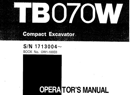 Download Operator’s Manual For Takeuchi TB070W Compact Excavator.