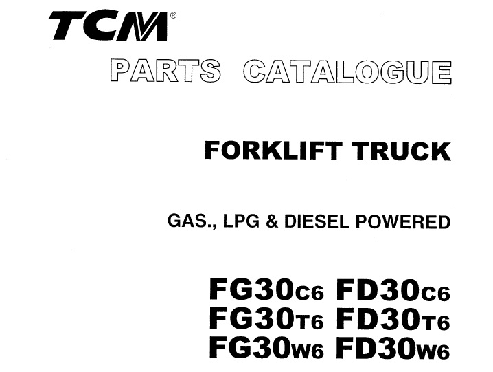 Download Complete Parts Manual for TCM FG30C6, FG30T6, FG30W6, FD30C6, FD30T6, FD30W6 Gas & Diesel Powered Forklift Truck.
